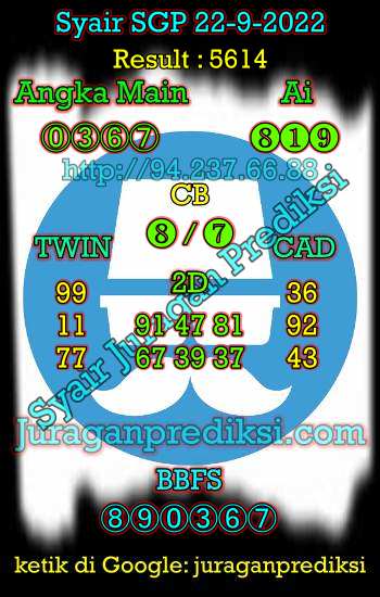 Banyak orang mencari Angka Jitu Sgp, Bocoran Sgp, Prediksi Syair Sgp, Sgp Hari Ini, Syair Sgp, Syair Singapore Hari Ini 22 September 2022. Dan hanya di juraganprediksi.com sajalah prediksi dan syair Singapore paling jitu dan akurat.
